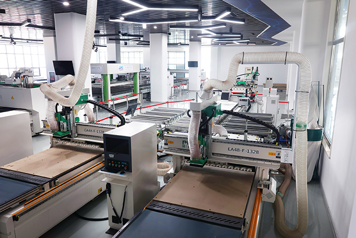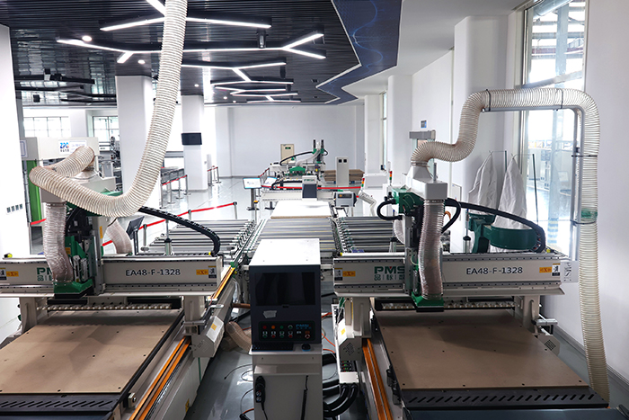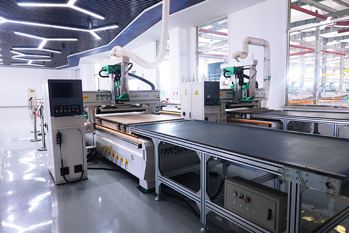 3,同一訂單可以快速推進(jìn),中控系統(tǒng)自動分配板材進(jìn)入可加工工位,有效推進(jìn)同批次同訂單同花色板材依次加工。